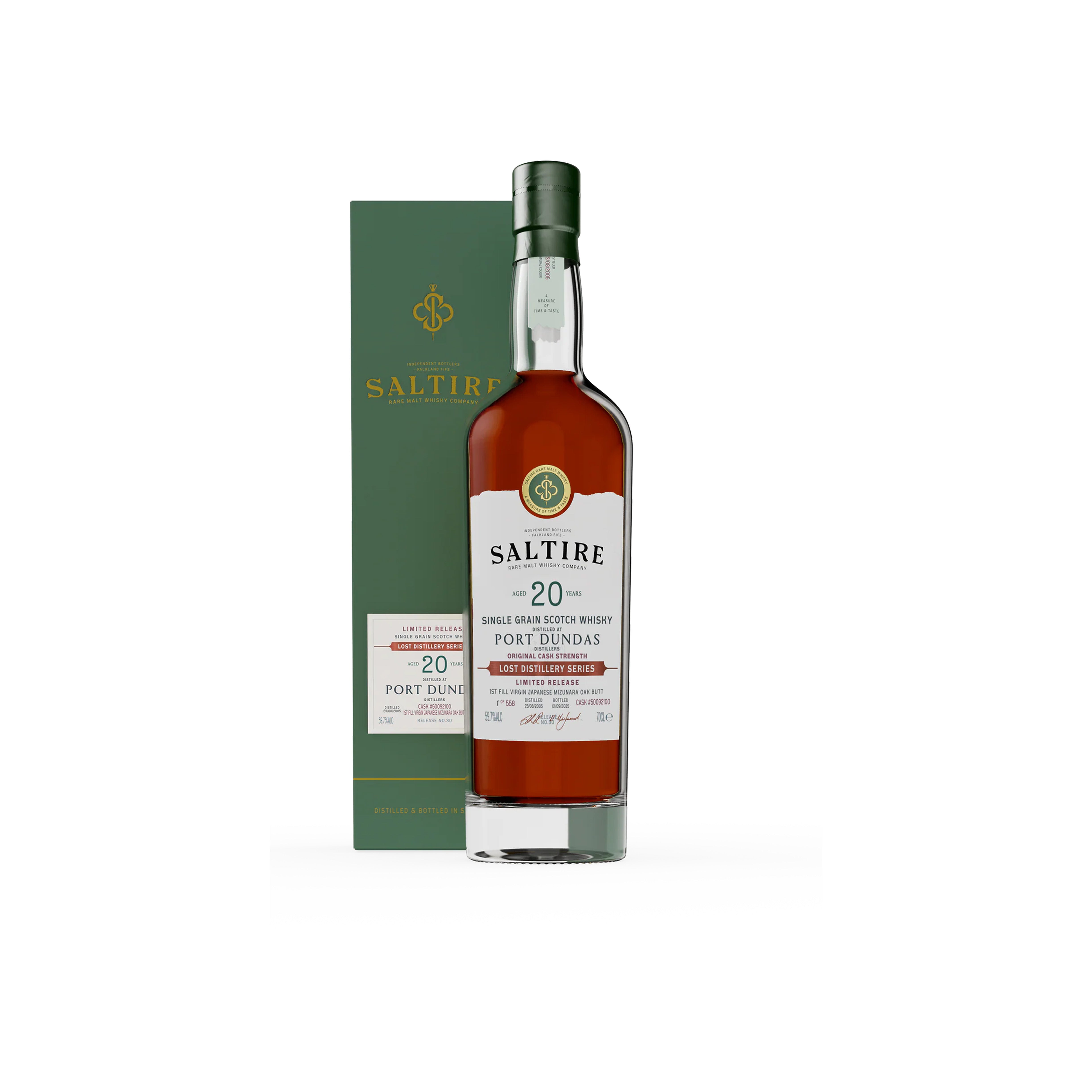 Selected and bottled by Saltire Whisky, this whisky was matured in an extraordinarily rare Japanese Mizunara oak butt — a cask type seldom seen in Scotch maturation. Mizunara oak is renowned for its porous nature, long seasoning requirements, and unmistakable aromatic profile, making it both difficult to work with and exceptionally prized. Its use here elevates an already rare closed-distillery grain into something truly singular.